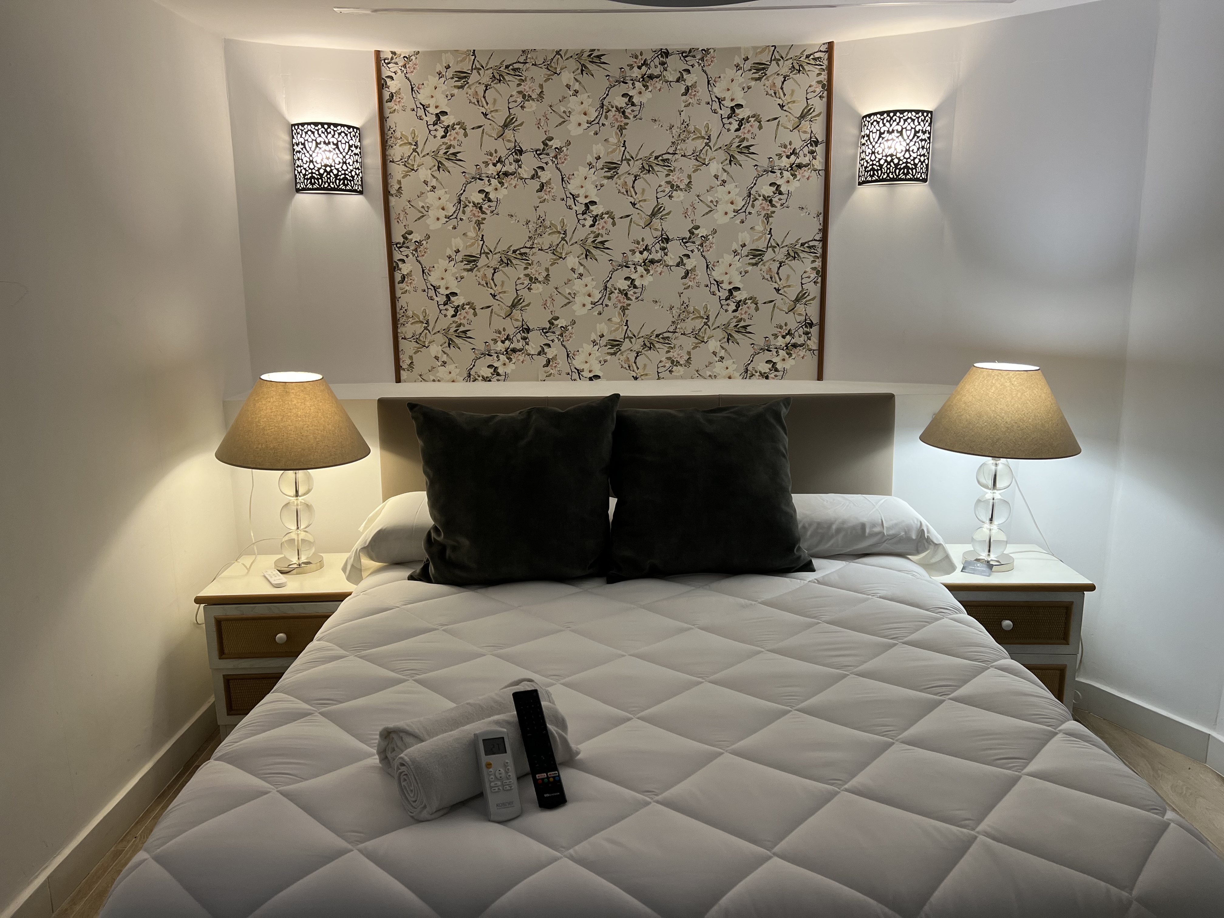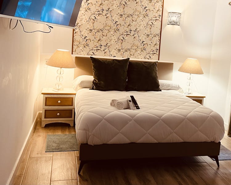 Tienen a su disposición 19 habitaciones, en tres plantas, algunas de ellas con bañera de hidromasaje y camas King Size, con capacidad de hasta 4 huespedes. Todas ellas equipadas con TV Smartv, ducha, escritorio, aire acondicionado y lámpara ventilador.
