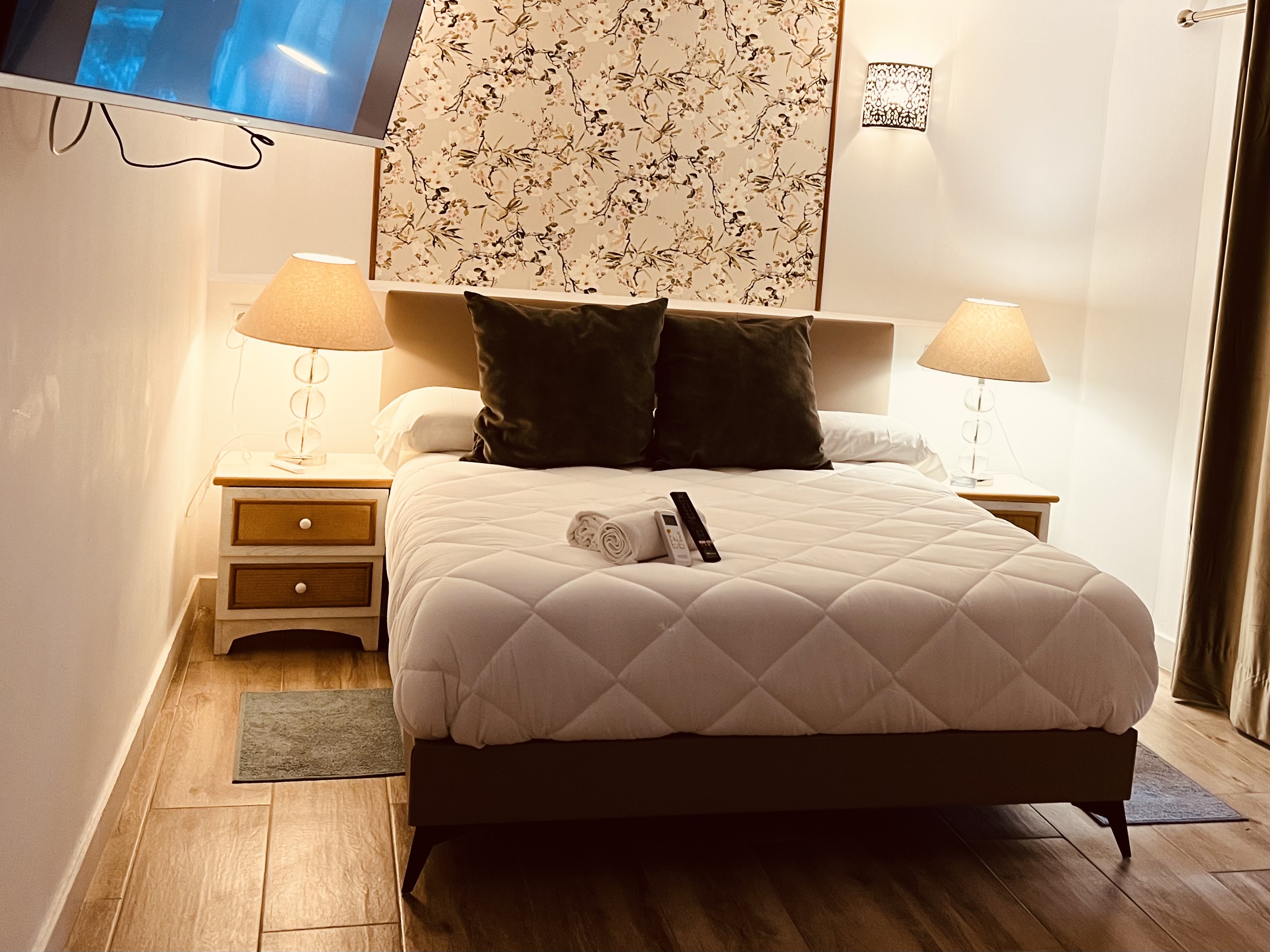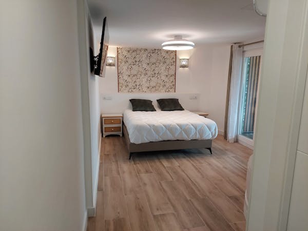 This double room features air conditioning, a wardrobe and a private bathroom with a shower and bidet. It has tiled floors, a flat-screen TV and garden views. It has a King Size bed. If the reservation is for three people we add an extra bed.